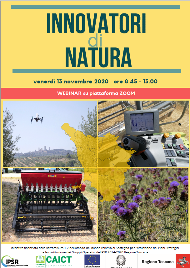 Venerdì 13 novembre, dalle ore 08:45 alle ore 13:00 si svolgerà online (Piattaforma ZOOM) il webinar dal titolo Innovatori di natura.